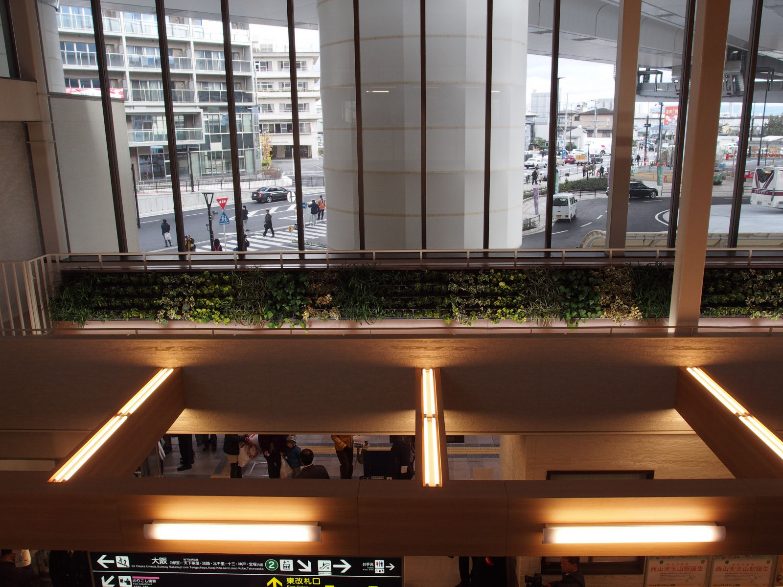 こちらは東改札口の吹き抜けをホームから撮影した写真.ここは開業前の見学会では入れなかった場所です.
