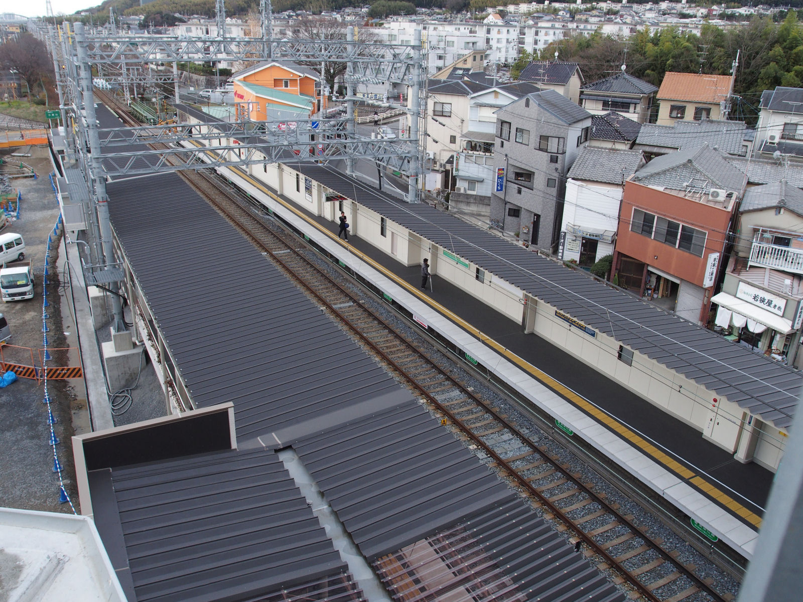 駅の上に架かる高速道路やそれらのぶっとい柱により,他の特急通過駅とは一線を画した光景となっています.