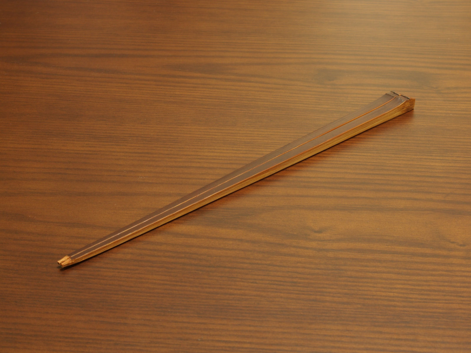 材料には、すす竹(建材として天井裏などに使われていた竹が囲炉裏やかまどの煙でいぶされ150年程の年月を経て丈夫でそりにくい貴重な竹になります。)を使い、箸先にも当店独自の工夫を凝らして丁寧に手作りしたお箸です。