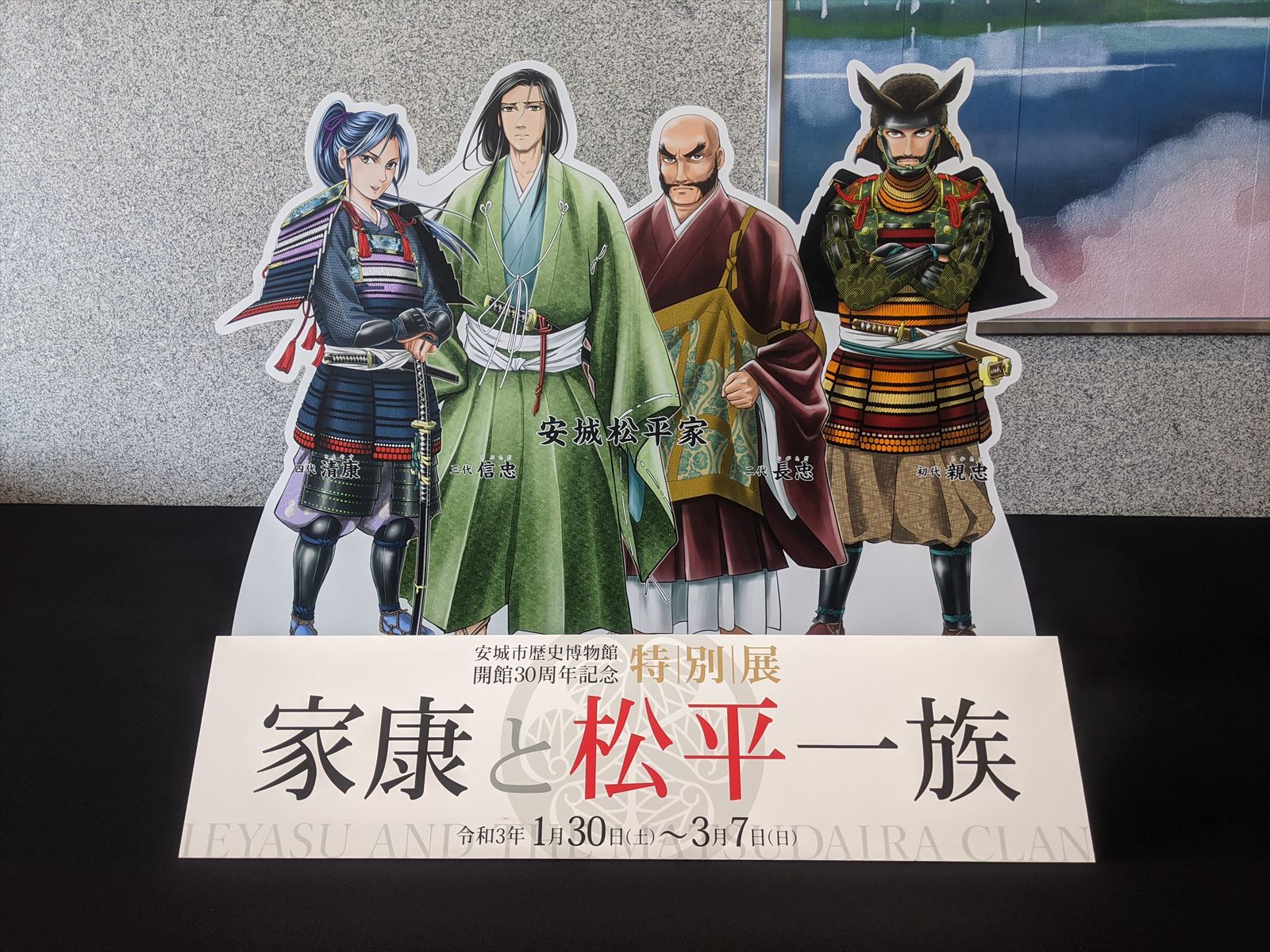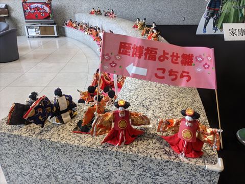 安城市歴史博物館の福よせ雛 2021/2/20(5年前) 愛知, 日記, 東海 安城市歴史博物館の福寄せ雛を見に行きました. 開館30周年記念特別展「家康と松平一族」開催中でした. 安城松平初代親忠,二代長忠,三代信忠,四代清康の等身大POP. 福寄せ雛のテーマがそれで,他では見られない福寄せ雛が見れました. 会場の受付. 清康に集まる歴女.