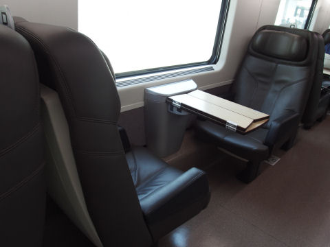 今回予約したのは1等車.写真のような皮張りのシートです.1列または2列で座席が向かい合うようになっています.