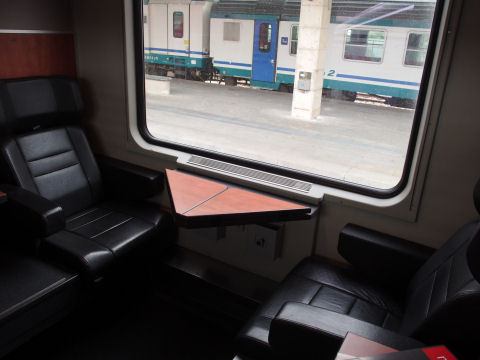 5時間の長旅となりますが,ユーロシティは個室となっていて,また1等車は写真のように皮張りの椅子なので,快適な旅でした.
