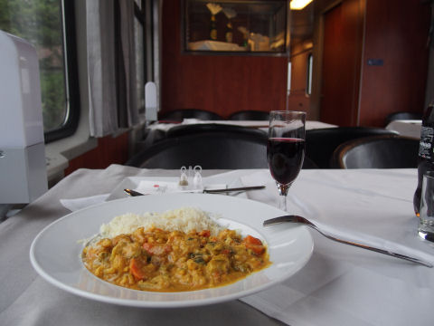 せっかくなので食堂車を利用しました.遅くいったせいかイタリア料理は終わっていたので,野菜カレーを食べました.