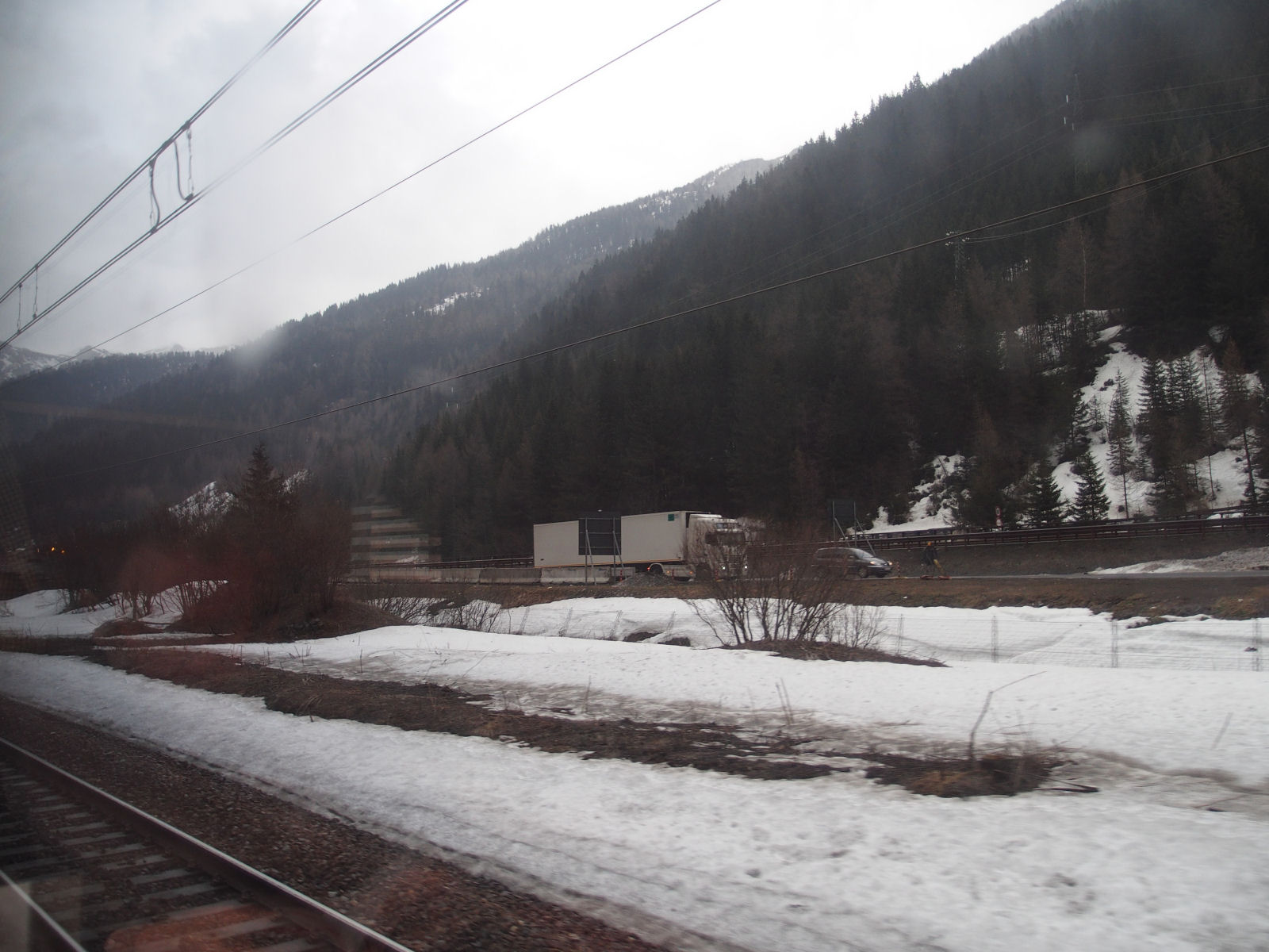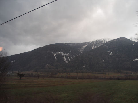 車窓からの光景です.インスブルックに近くなると,雪も見られるようになりました.