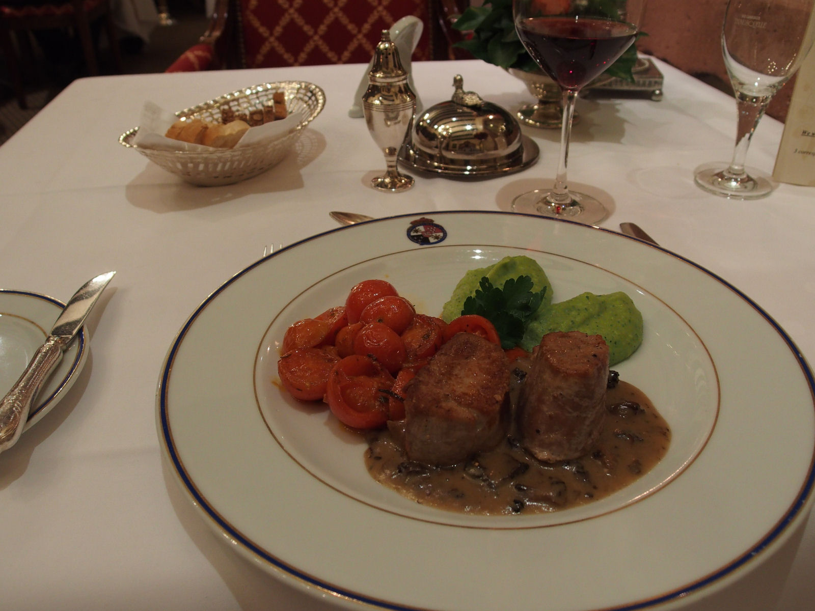 こちらは夕食のコースのメインディッシュです.今回の旅で唯一まともに食べた夕食です.