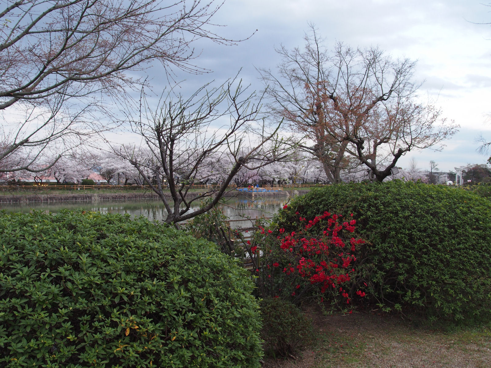 場所は会社の施設で,この施設は長岡天満宮の八条が池に面しています.さらにこの週は桜のライトアップが行われる期間でした.