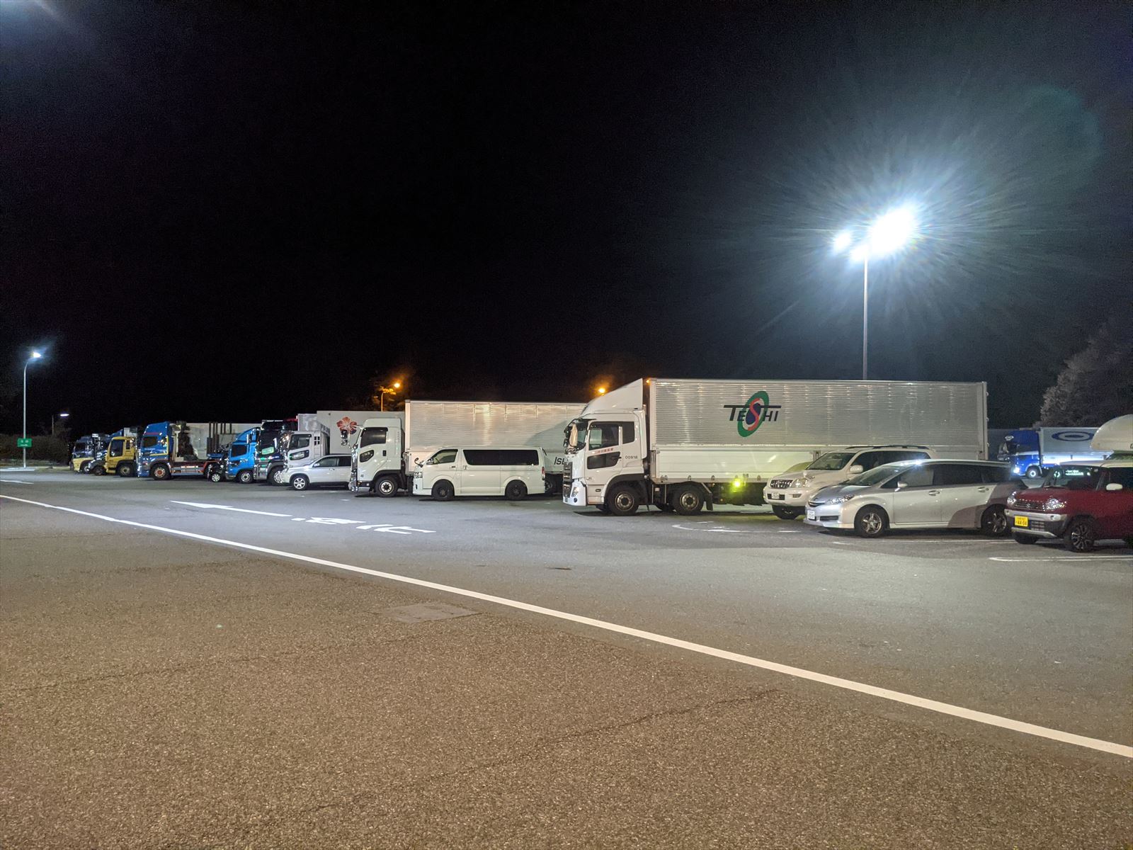 駐車場を見るとほとんど埋まっていました.SAで泊まる人は多いのですね.