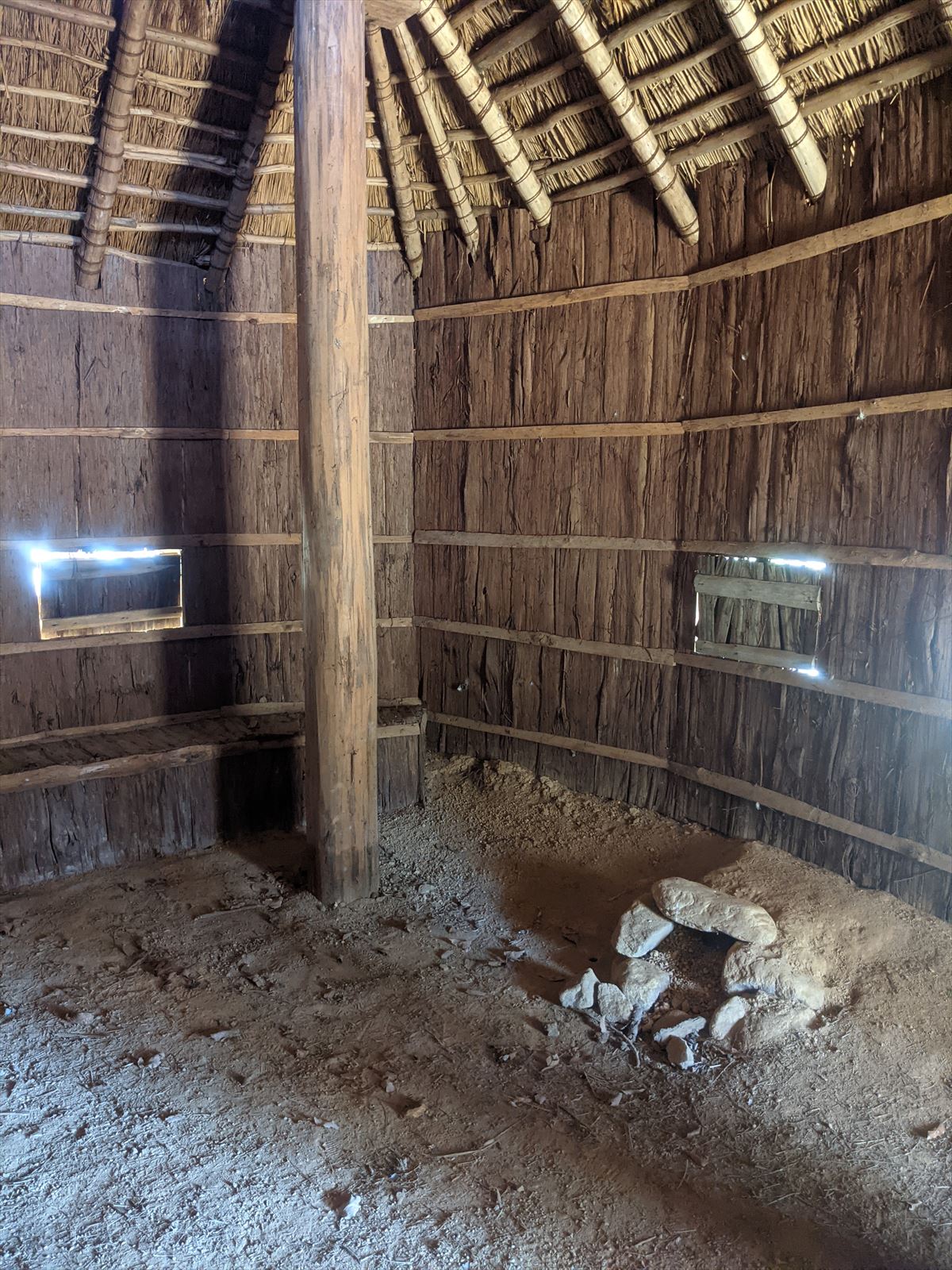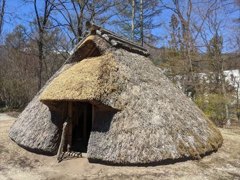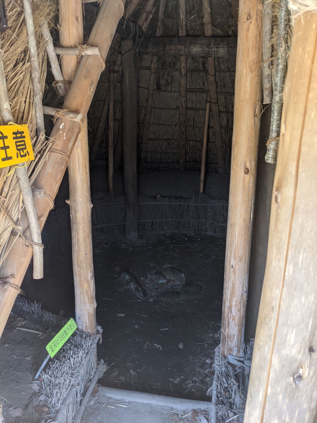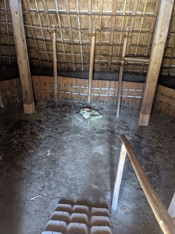 お馴染みの竪穴式住居で,家の真ん中に炉があります.