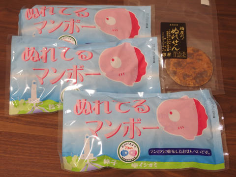 イシガミではぬれてるマンボーというぬれ煎餅を会社用に購入しました.