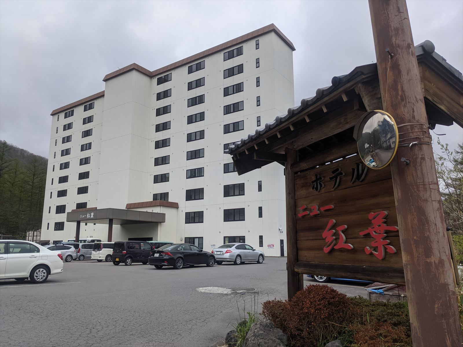 草津温泉に泊まる 2021/5/7(5年前) 日記, 群馬, 関東 帰る前に行ってみたかった草津温泉に泊まりました. 泊まったのは安くて夜遅くでもチェックインできるホテルニュー紅葉. 写真はロビー.奥にゲームコーナーがあります. 泊まった部屋は10畳と広いです. 大浴場は内湯と露天があり,硫黄の香りがする温泉で,温度もちょうどよかったです. ここまで見ると素晴らしいホテルですが,Wi-Fiはロビーしか使えなかったり風呂にロッカーはなくフロントに預ける必要があったりという不便もあり,金をかけるところを割り切って安くしている感じです. 翌朝の部屋からの眺め. 西の河原公園が見渡せました. ホテルの外観.