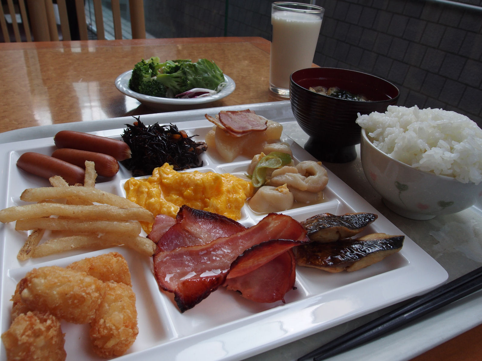 それまでの時間で,ホテルの朝食バイキングを食べました.