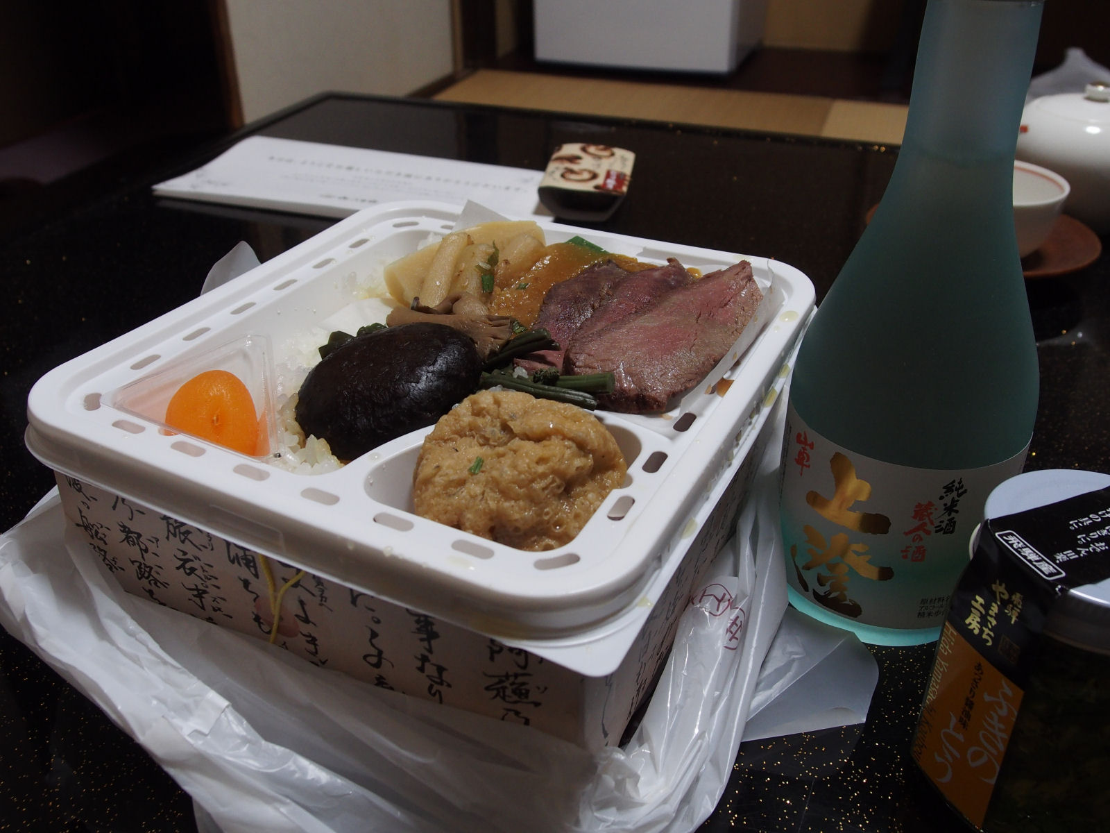 とりあえず温泉に入り,夜景が撮れるまでだらだら過ごしてから夜景を撮影し,夕飯は高山で買った地酒と飛騨牛の弁当で済ませ,就寝しました.