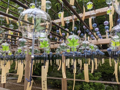 正寿院の風鈴まつり 2021/6/26(5年前) 京都, 日記, 東海, 近畿 この週末は京都に来ました. 今回は風鈴まつりが行われているとのことで4月にも来た正寿院に行きました. 様々な面白い風鈴がありました. あじさいが入った風鈴. もみじが入った風鈴. 椿が入った風鈴. 組紐が入った風鈴. ひとつだけてるてる坊主の風鈴がありました. 何も入っていない色ガラスの風鈴.