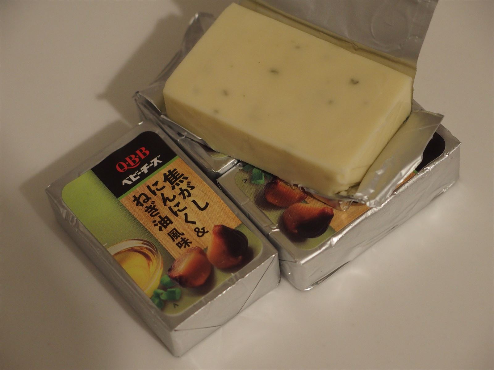 ラジオで紹介していたQ・B・Bのベビーチーズ 焦がしにんにく&ねぎ油風味というのがおいしそうだったので,スーパーで探して買ってみました.