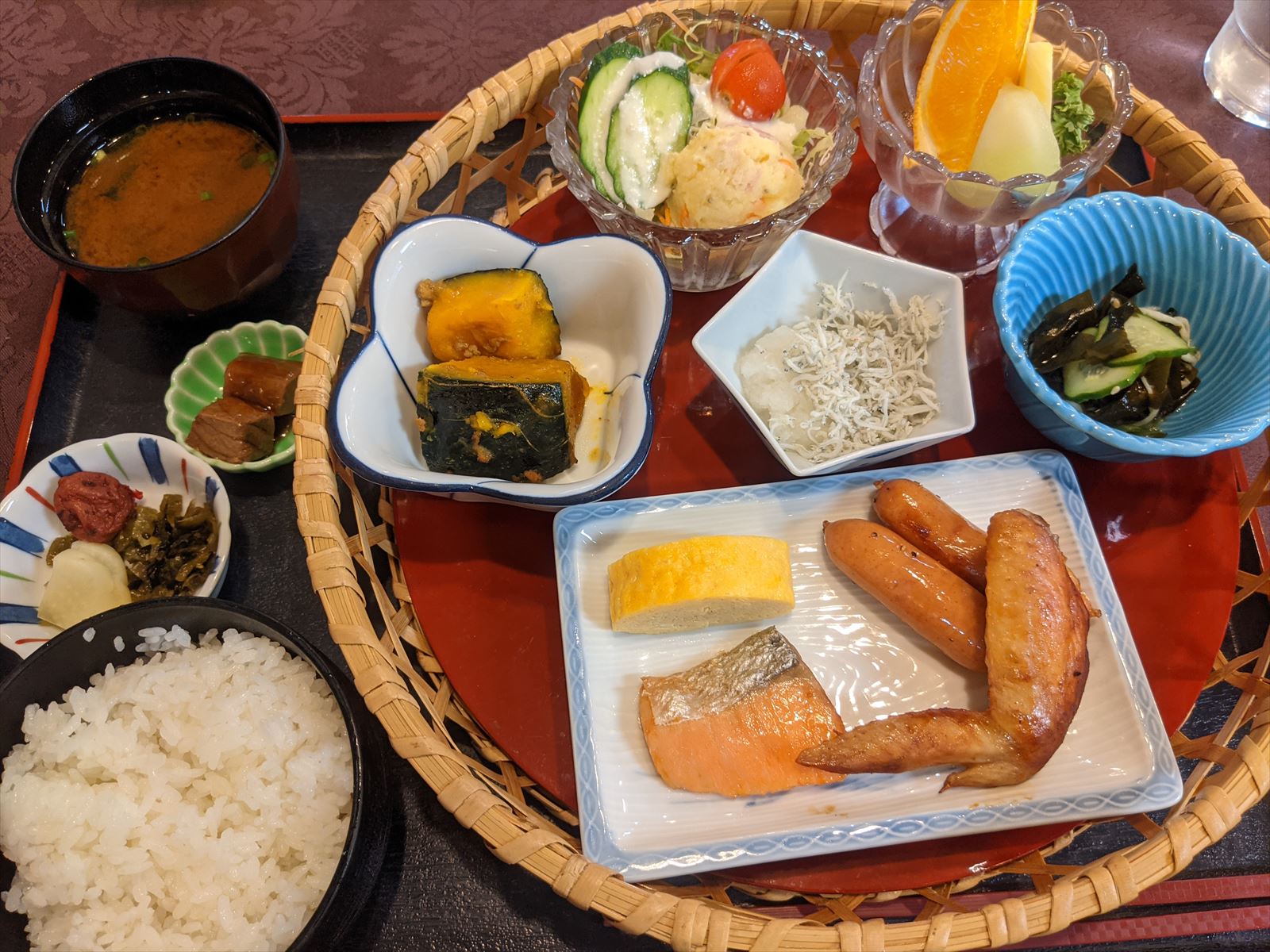朝食は通常であればビュッフェなのですが,今はかご弁当となっています.