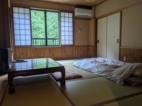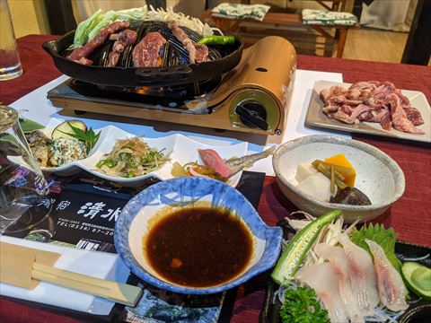 ふるさと納税:御宿清水館 2021/9/17(5年前) 愛知, 日記, 東海 ふるさと納税の返礼品として愛知県豊根村の御宿 清水館に宿泊しました. 部屋. 窓から渓流が見えます. 風呂から深緑が眺められます. 中は木が多く使われていてログハウス風です. 食事の場所.・ メイン料理はジンギスカン. 主食は愛知らしく御幣餅でした.ご飯は頼んだらもらえました. 翌日の朝食.