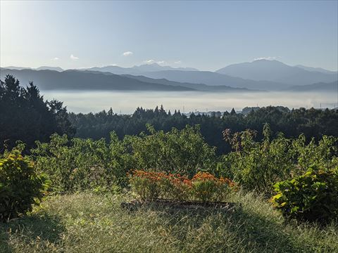 上伊那で車中泊 2021/10/2(5年前) 日記, 甲信越, 長野, 食べ物 早朝から撮影したい場所があったため,上伊那で車中泊しました. 仕事を終えてから泳ぎに行き,そのまま上伊那まで移動しました. 夜の移動は空いているので快適です. 午前0時頃にファミレスに入って夜食. COCO’Sに入ったのですが,COCO’Sは何となくハンバーグのイメージがあります. 腹が膨れて眠くなったところで就寝. 寝るときは若干暑いと感じて裸足でタオルケットなしにしましたが,途中で寒くて目が覚めました. 寝てからしばらく経ったら車内の温度が大分下がったようです. 朝起きて近くの展望台に行くと,市街地の方に朝もやが出ているのが見えました.