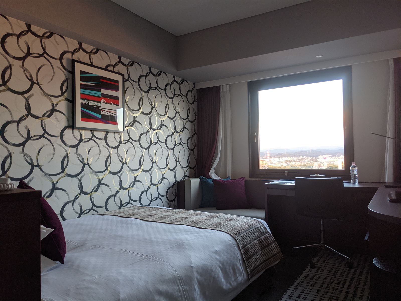 普通に泊まると1万円する部屋で,シングルにも関わらず広いです.机が広い上にソファーもありました.