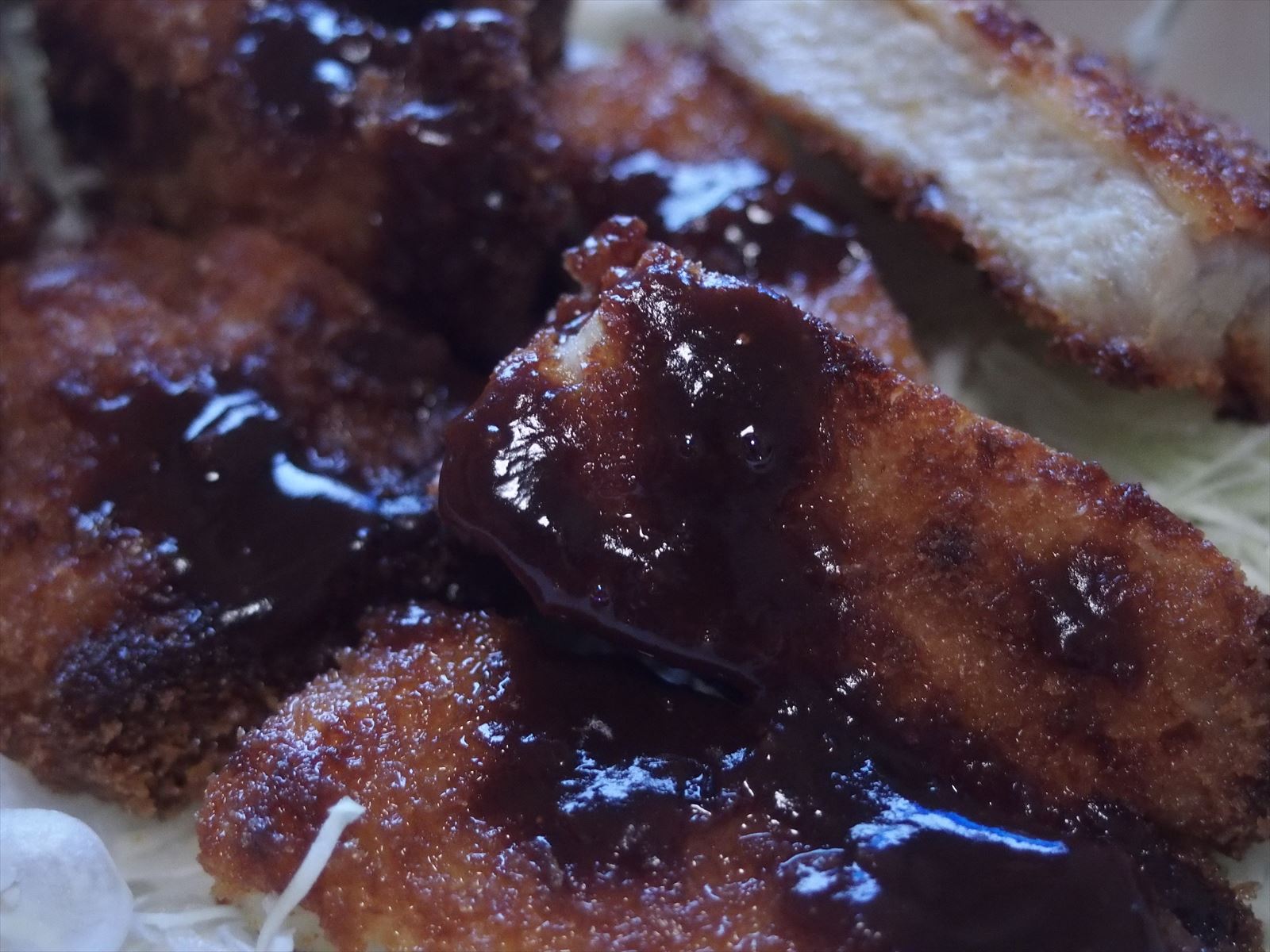ちなみに味噌だれが余ったのでスーパーで買ったとんかつに同じようにかけてみたところ,矢場とんのとんかつのように味噌だれが衣にしみこみませんでした.