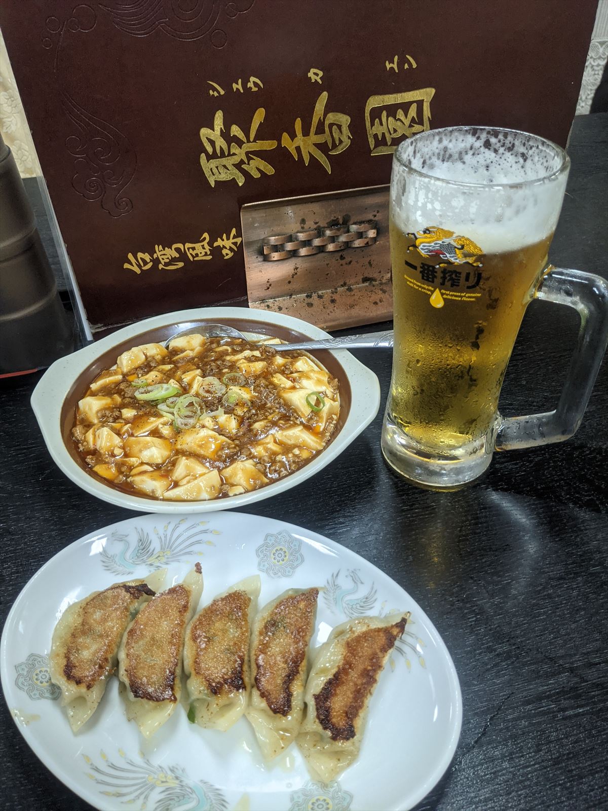 おつまみ2品選べるということで,焼き餃子と麻婆豆腐にしました.