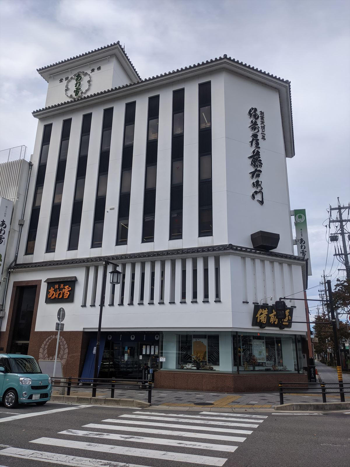 備前屋の代表銘菓,あわ雪.江戸時代にあった「あわ雪豆腐」をイメージして作った菓子とのこと.