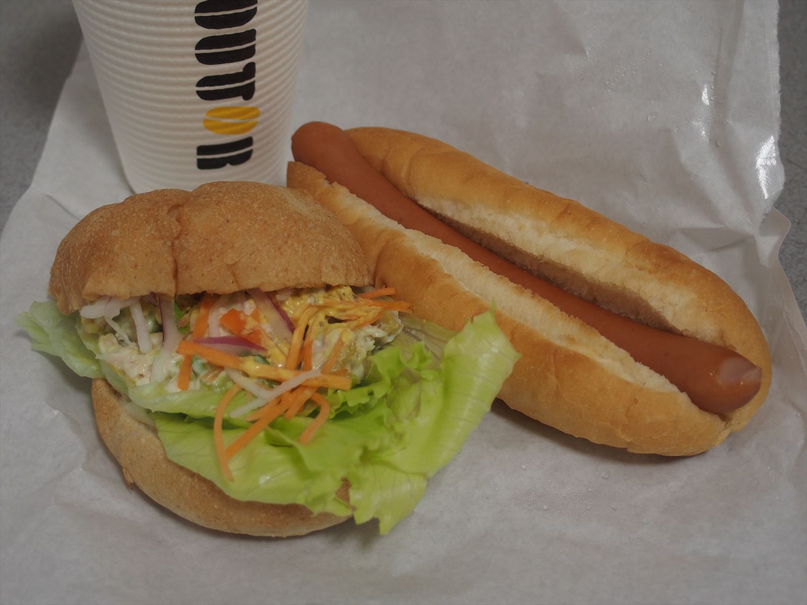 翌日にドトールでコーヒーとアボガドサンドとジャーマンドッグをテイクアウトして昼食にしました.