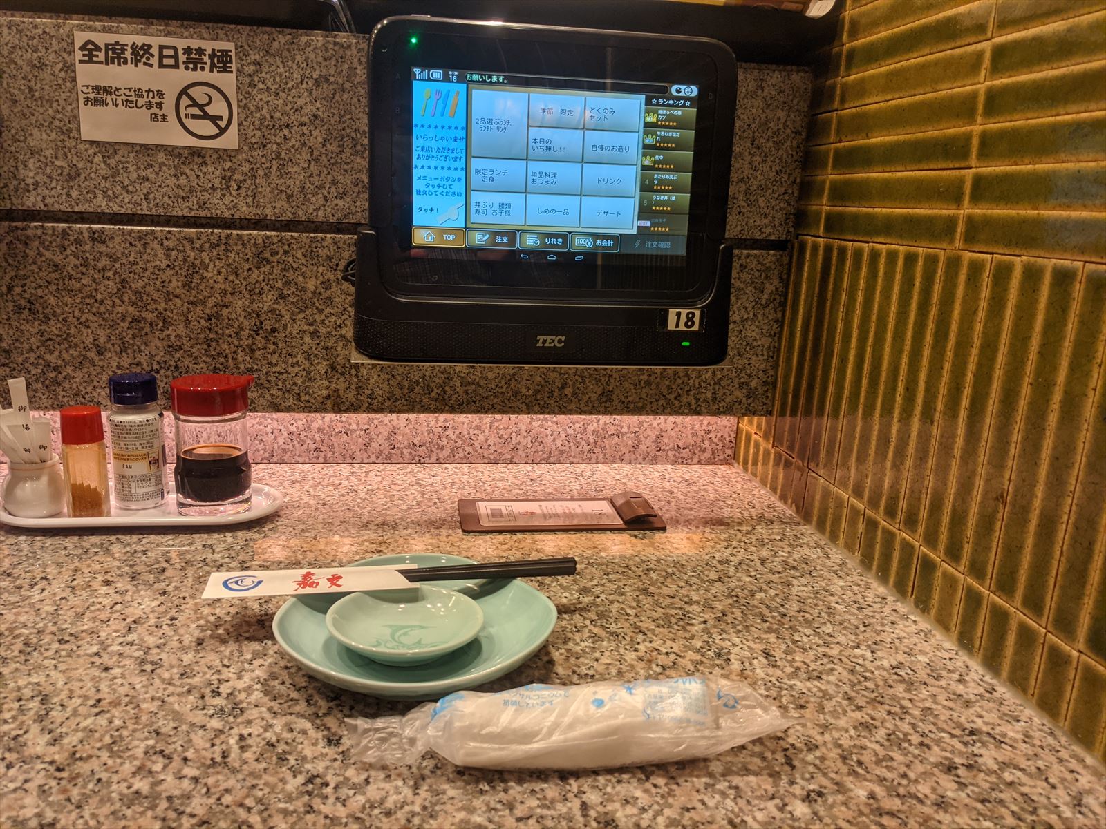 注文はタッチパネルなのでしゃべらなくてもよいし便利.