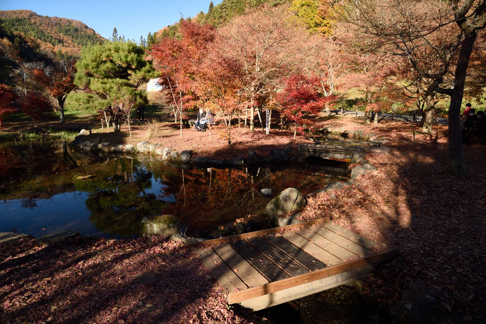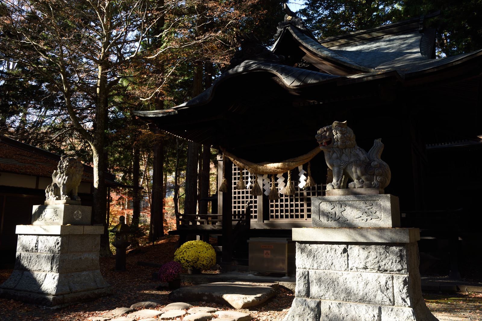 出早公園 2021/11/13(4年前) 写真, 甲信越, 長野 この日はもうひとつ,諏訪の紅葉の名所 出早公園に行ってみました. 入口には出早雄小萩神社の鳥居があります. 出早雄小萩神社の拝殿. 神社の奥に行くと公園があります. 紅葉が増えてきました. 公園には池や小川がありました. 青空とともに紅葉が水面に映ります.