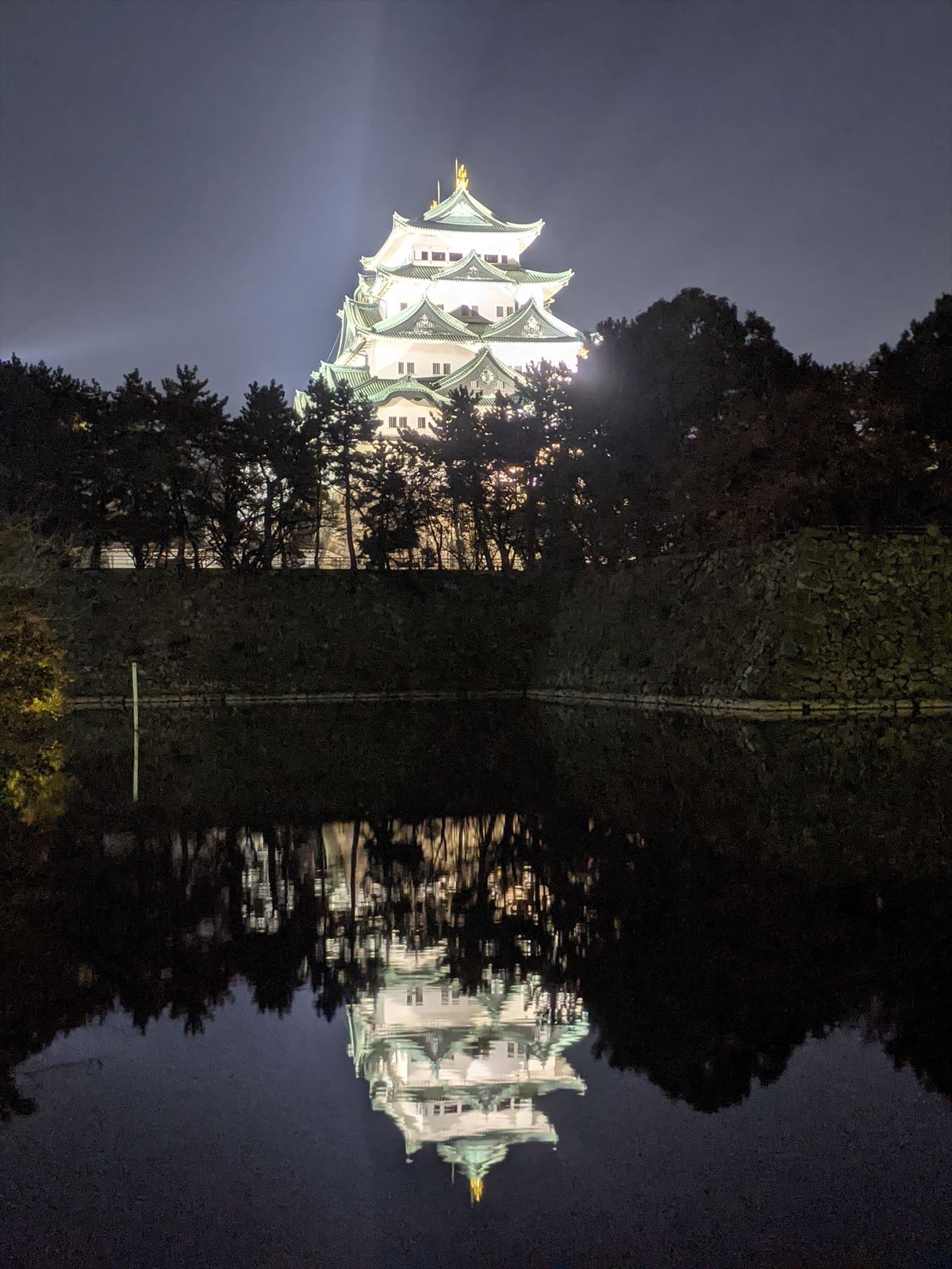 夜の城めぐり 2021/11/19(4年前) 愛知, 日記, 東海 このところ週末はキャンペーンを使ってどこかに泊まっていましたが,コロナ収束とキャンペーン浸透のせいか満室が増えたり宿泊料金が上がったりしてきたので,この週の利用はいったんお休みとしました. また紅葉の季節なので下手に出かけると渋滞に巻き込まれます. ということで道路が空いている夜に城めぐりをしてみました. まずは岡崎城.夜なので当然中には入れません. 続いて名古屋城.北の堀を挟んで撮影.