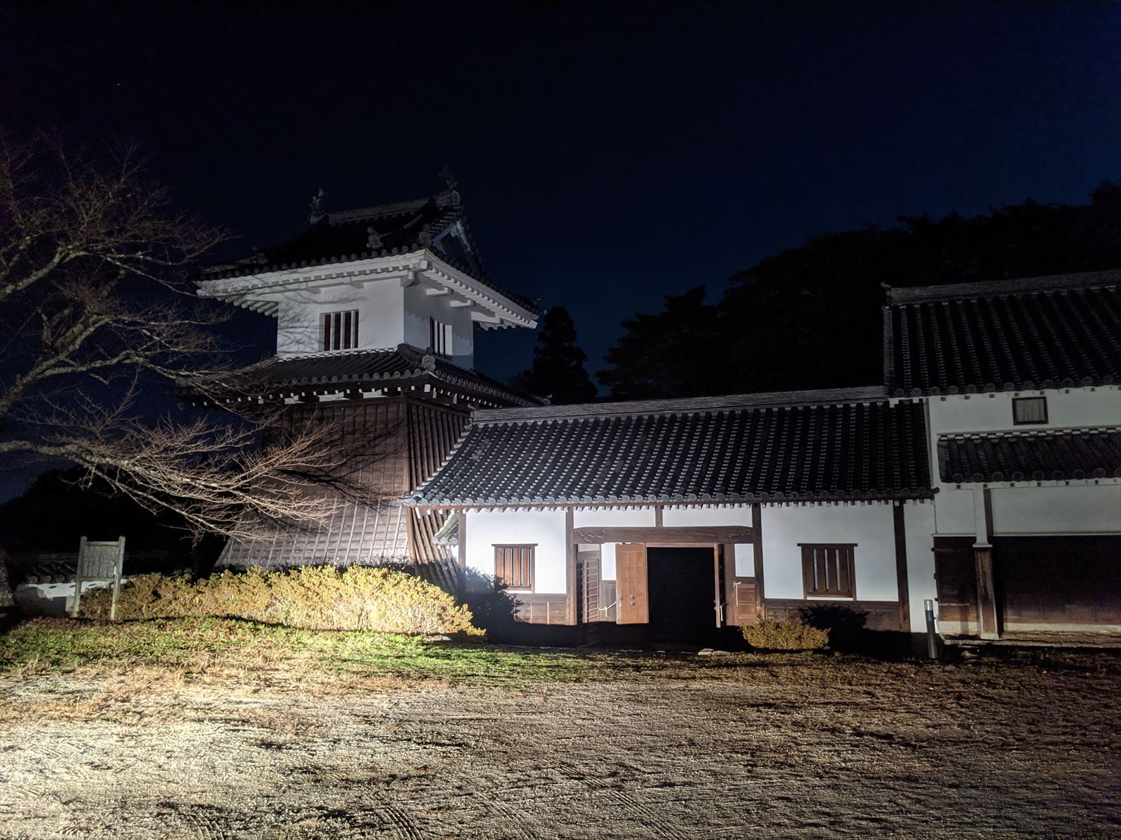 下ヶ淵のカエデのライトアップを見逃す 2021/11/20(4年前) 岐阜, 日記, 東海 下ヶ淵のカエデのライトアップを見たいと思っていて,毎年紅葉の頃に思い出すのですがその時にはすでにライトアップは終了となっていました. 今年も思い出して調べたときには数日前に終わっていました. 終わっているとわかっていながら行ってみました. 既にライトアップは行われていなかったので,車のライトで照らしました. まだ葉は散っておらず見頃というのに残念です.来年は必ず行きたいと思います. もうちょっと足を延ばして岩村歴史資料館まで行きました. こちらはそこの門と櫓.