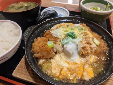 地域ポイントを使ってリッチに食べたいところでしたが,これはという店が近くになかったので安い定食系のチェーン店 街かど屋でかつとじ定食を頂きました.