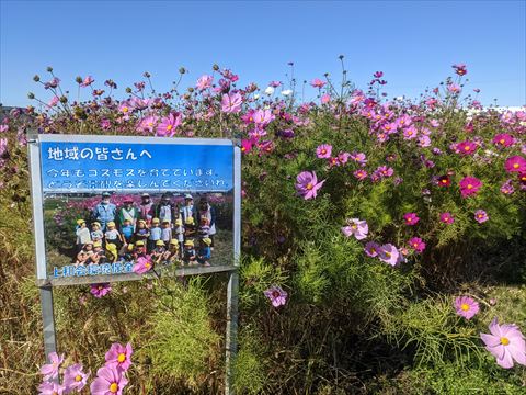 迂回したところ,地元の人が育てたコスモス畑に当たってほっこり.
