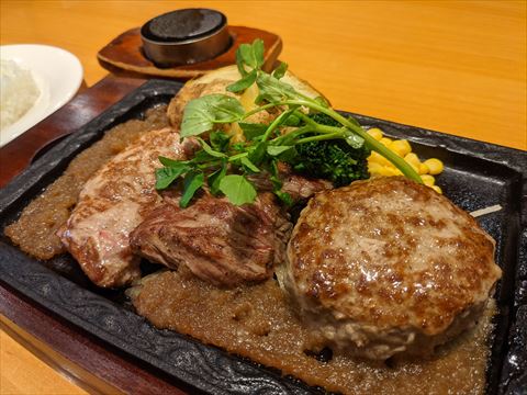 頼んだのはロース,サガリ,ハンバーグが入ったステーキ宮の3大名物名物コンボランチ.