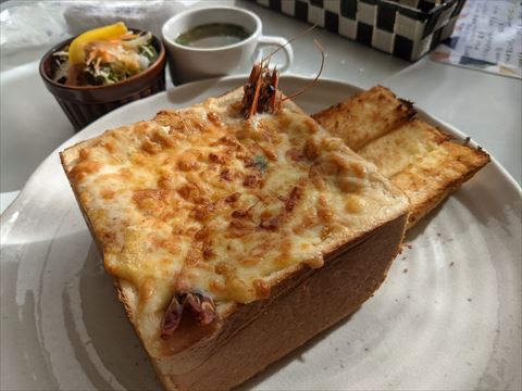ということで頼んだのがこちらのえびグラタン.インパクト抜群です.