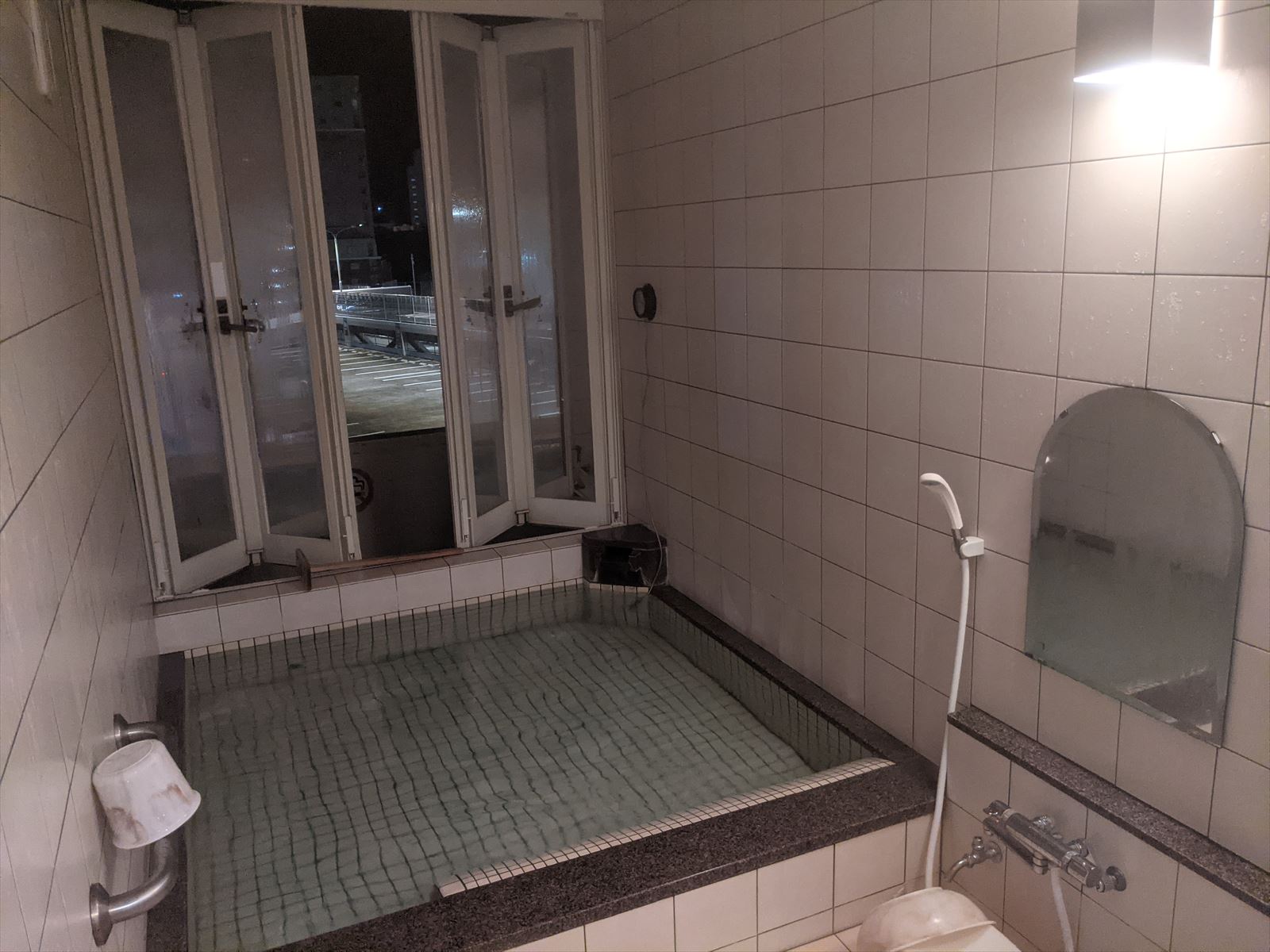 部屋に戻ってまた電話でフロントに確認したら貸切風呂は空いていないということでしたが,しばらくしたら今なら空いていると折り返してもらえました.