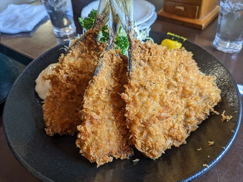 うおともというアジフライがうまい店があるとのことで焼きはまだけ食べてから行ったところ,大みそかのせいか休みでした.