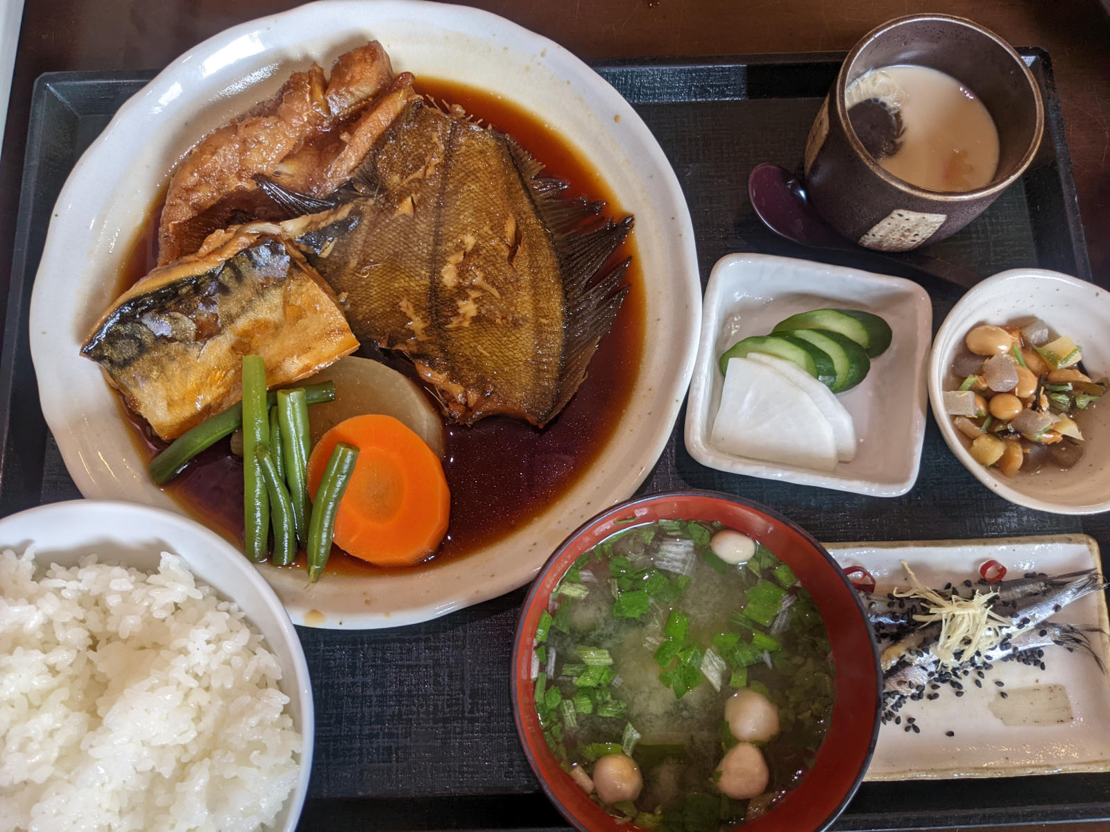 ここも焼きはまが食べられる店ですがそれは先ほど食べたので,ここで自分が頼んだのは1日限定20食という煮魚定食.