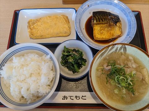 その結果がこちら.卵焼きと小鉢を追加,また味噌汁を豚汁にしています.