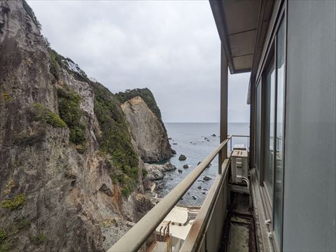 眺望がない分お得な部屋ということでしたが,窓から顔を出して横を向けば南紀名物の海と岩崖が見えました.