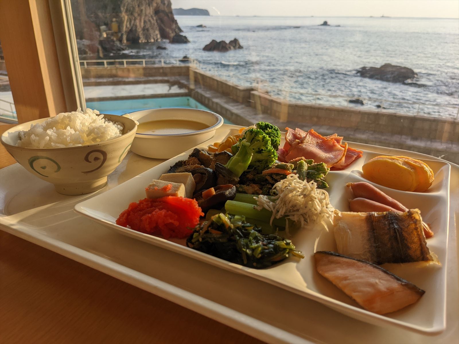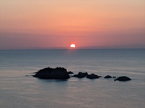ホテルと隣接,いやホテルの一部となっている狼煙山の展望台から日の出が見えるとのこと.
