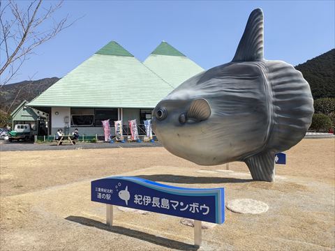 施設の入口にマグロのオブジェが.