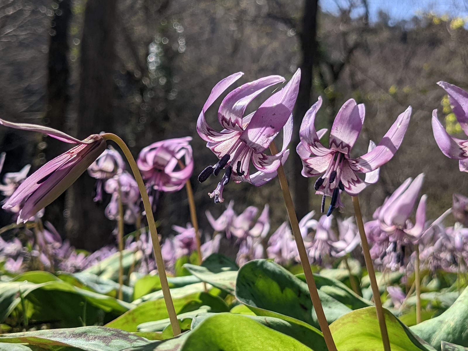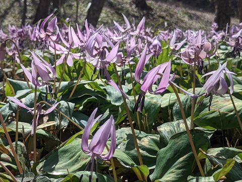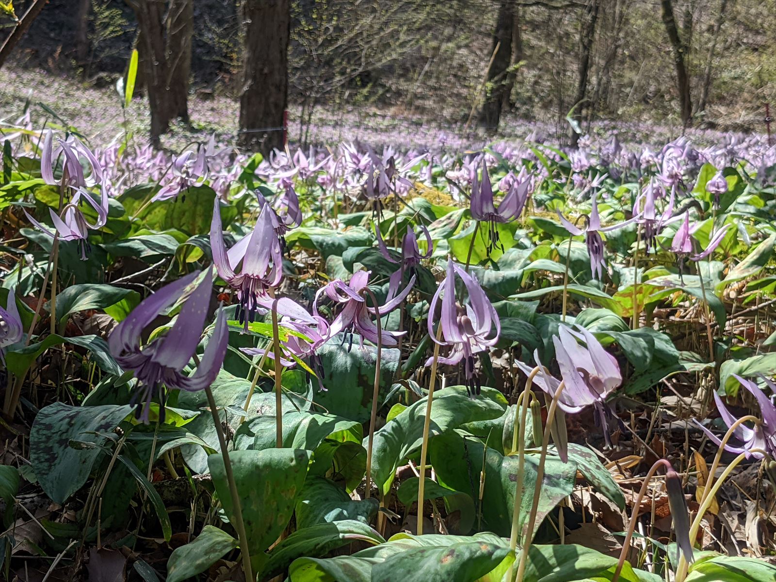 紅葉の名所で知られる香嵐渓はカタクリの群生地もあるとのことで言ってみたいと思っていたのですが,2週間前に行ったとこは咲いておらず,今週末はどうかと観光ブログを見たら「もう終わりました」とあったのでがっかりし,他の場所で見られないかと探したら岐阜の可児に群生地があるそうなので行ってみました.