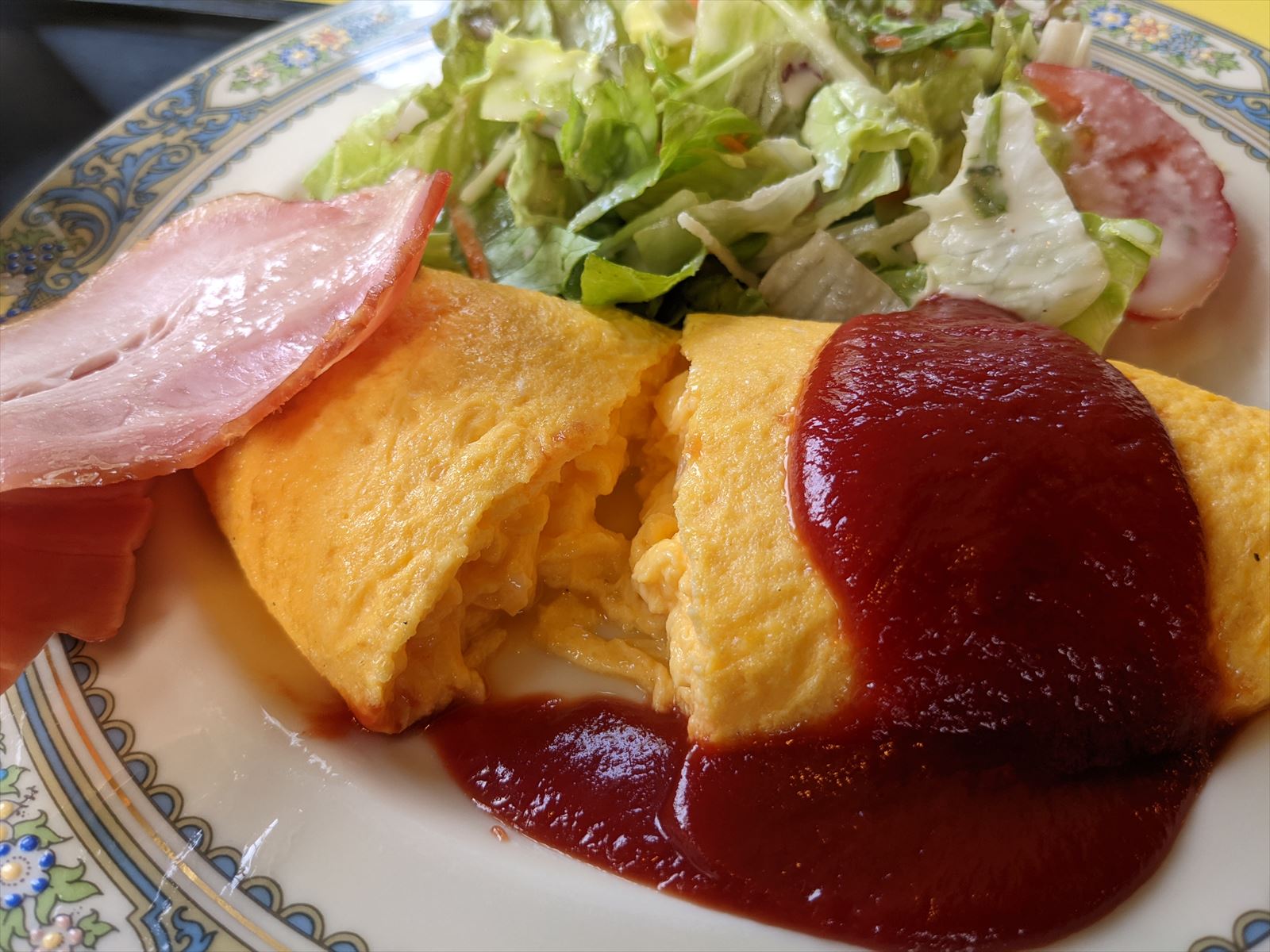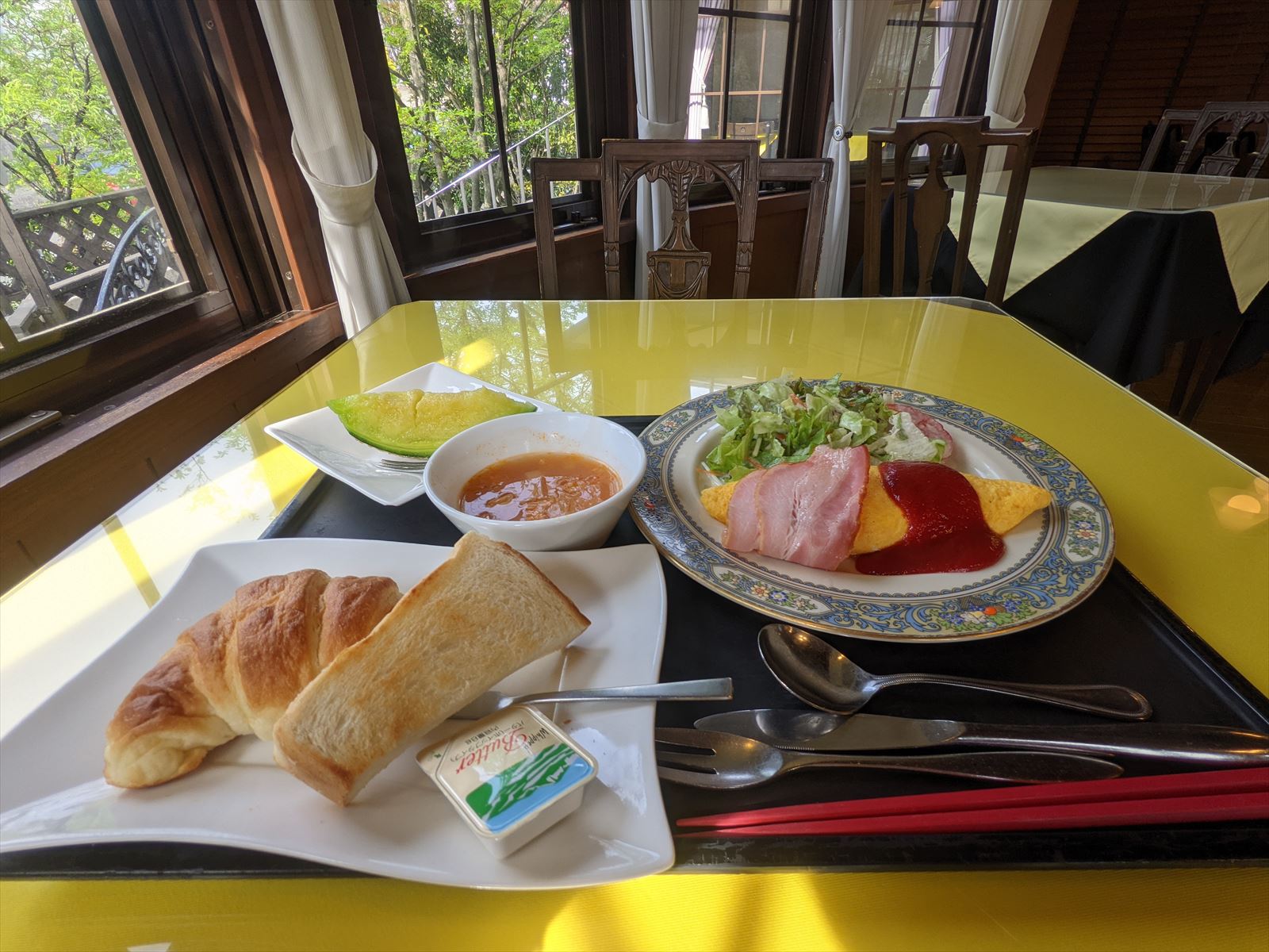 朝温泉と朝食 2022/5/6(4年前) 日記, 群馬, 関東 洋風旅館ぴのんの本館 松本楼の風呂も利用できるので行ってみました. 2階と最上階に風呂があり,時間によって男女入れ替えとなります. この時間は最上階の風呂が利用できました.眺めがよかったです. そしてようやく朝食. 和洋中選べる中から洋食を選択. とろとろオムレツです. レストランの様子.最初に入ったので他に誰もいませんが,夕食のときは満席でした.