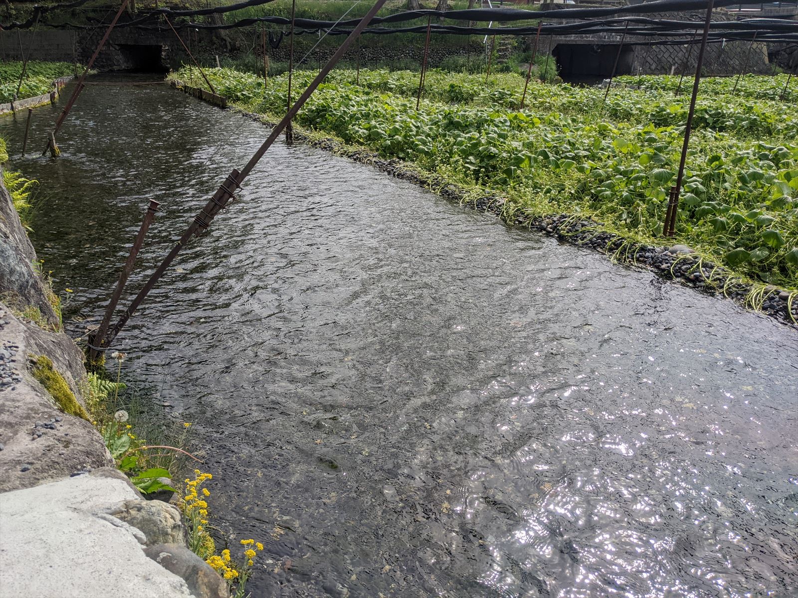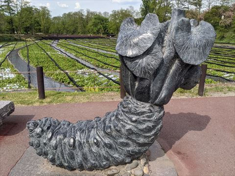 大王わさび農場 2022/5/6(4年前) 日記, 甲信越, 長野 最後に,大王わさび農場に寄りました. 地名の由来となった魏石鬼八面大王の像. 中に入ると広大なわさび農場が広がっていました. きれいな水が流れていますが,荒地を開拓して作った場所だそうです. わさびの石像. 農場の近くを小川が流れています. 写真ではうまく写っていませんが非常に透明度の高い水で川の中の草がくっきり見えていました.