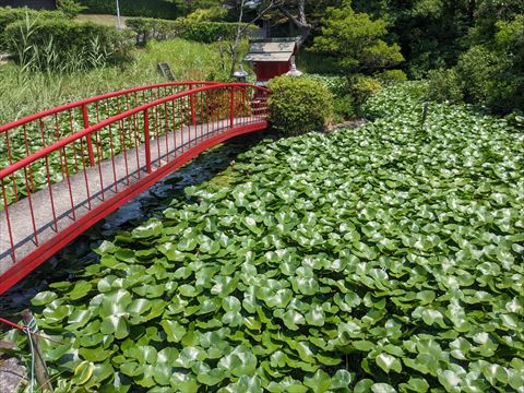 蓮がびっしり茂った池.時期になると大量の蓮の花が咲くのでしょうか.