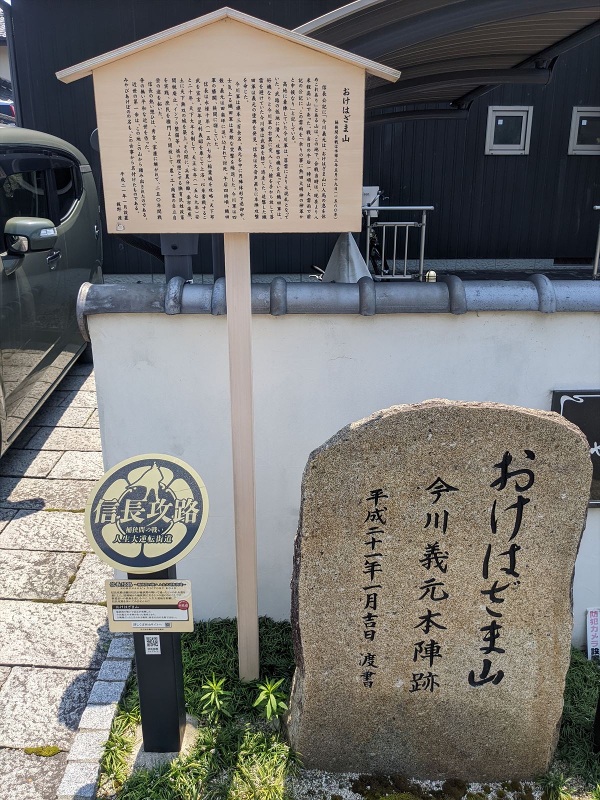 公園近くの住宅街の中に今川義元本陣跡碑があり,この辺がおけはざま山だったとのこと.