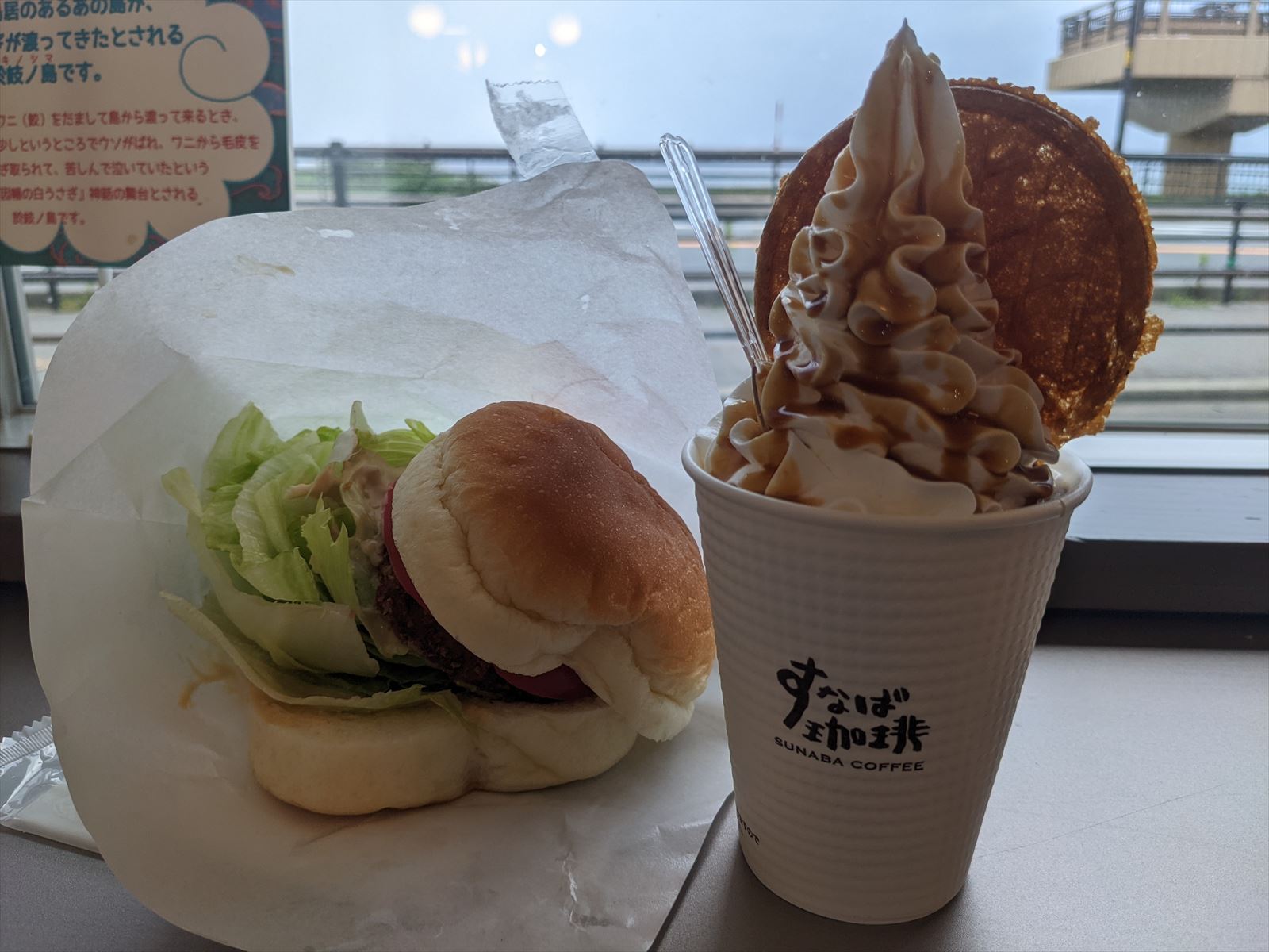 神社に隣接する道の駅 神話の里・白うさぎの中のカフェでお茶をしようとしたら,たまたまそこが「鳥取にはスタバはないけど日本一のスナバがある」で有名なすなば珈琲でした.