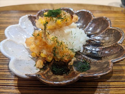 とうもろこしの天ぷらの寿司.