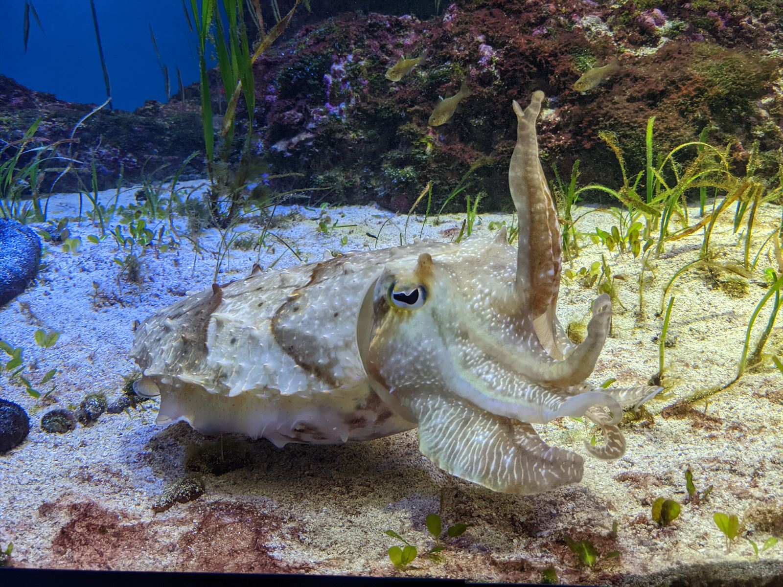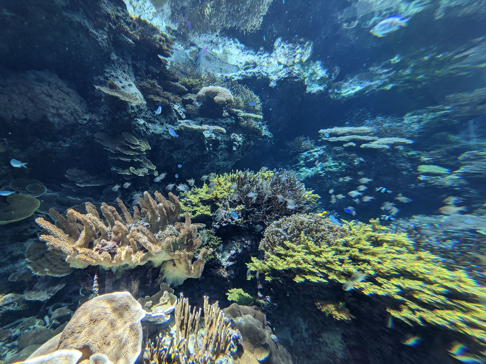 美ら海水族館 2022/8/19(4年前) 写真, 旅, 沖縄 沖縄の有名な観光名所,美ら海水族館に行きました. 目の前の海がきれいです. サンゴ礁の魚. デカいエビ. コウイカの仲間. チンアナゴ. そして名物ジンベイザメ. サメの歯.