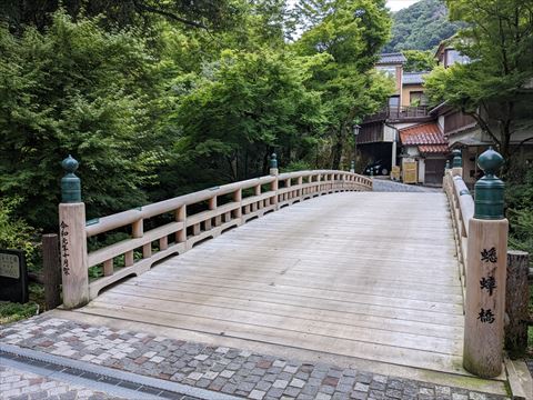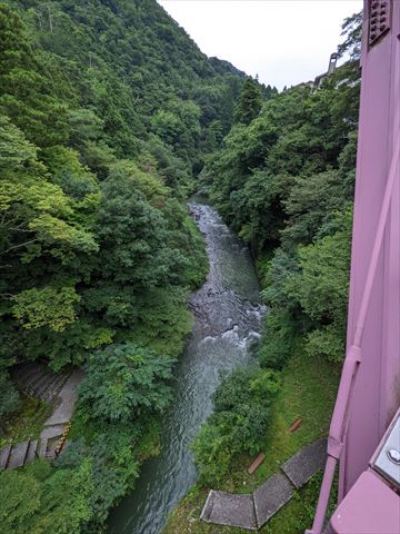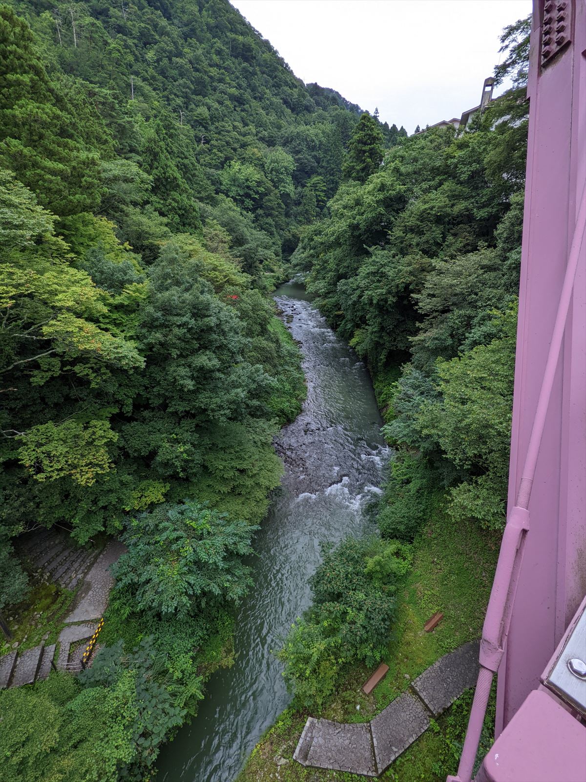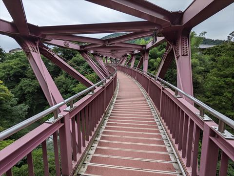 ホテルから見えていた鶴仙渓の遊歩道を歩くため,こおろぎ橋を渡ります.